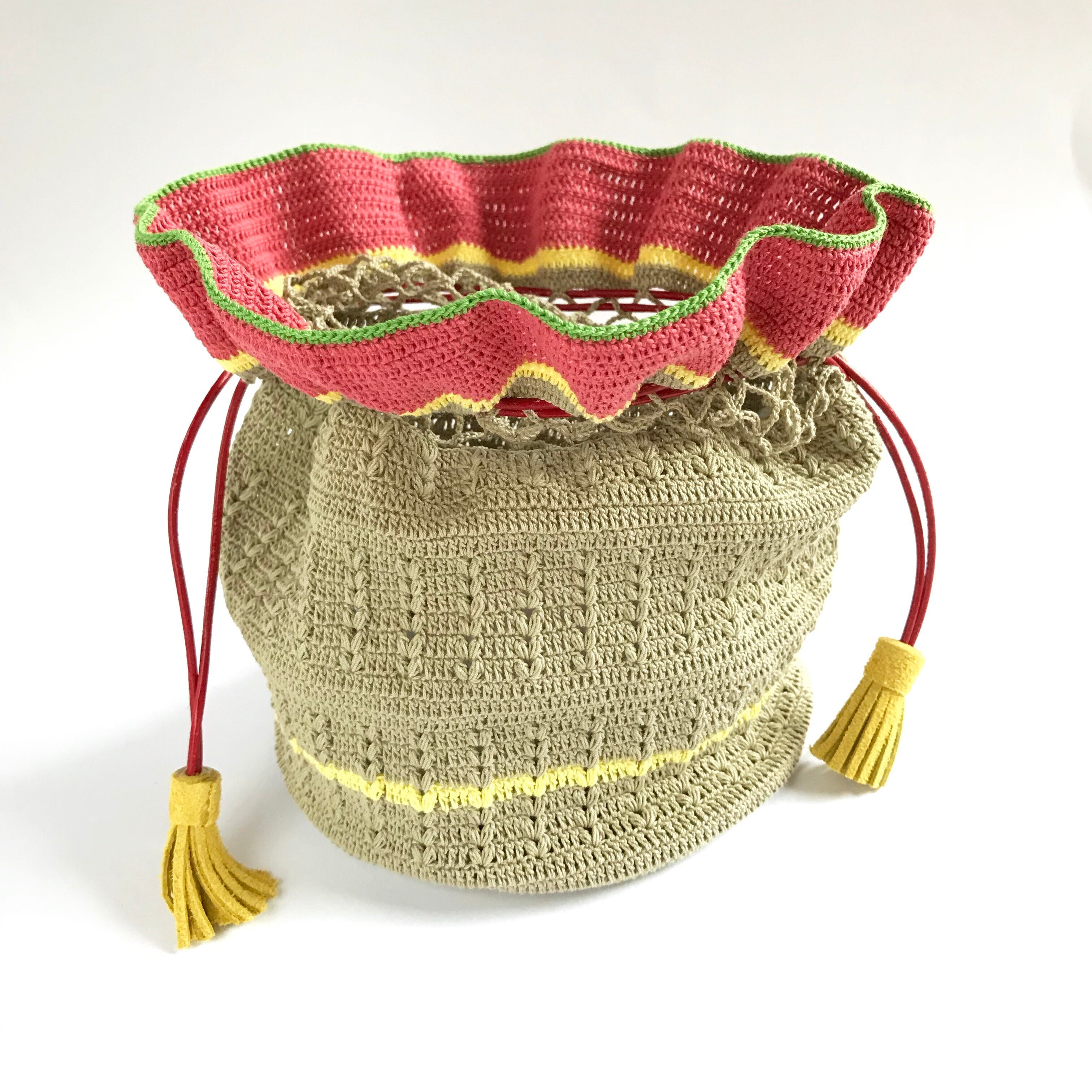 強く引っ張ったり、重い物を入れすぎますとレース糸など切れや破損の原因になりますので優しくお使いください。