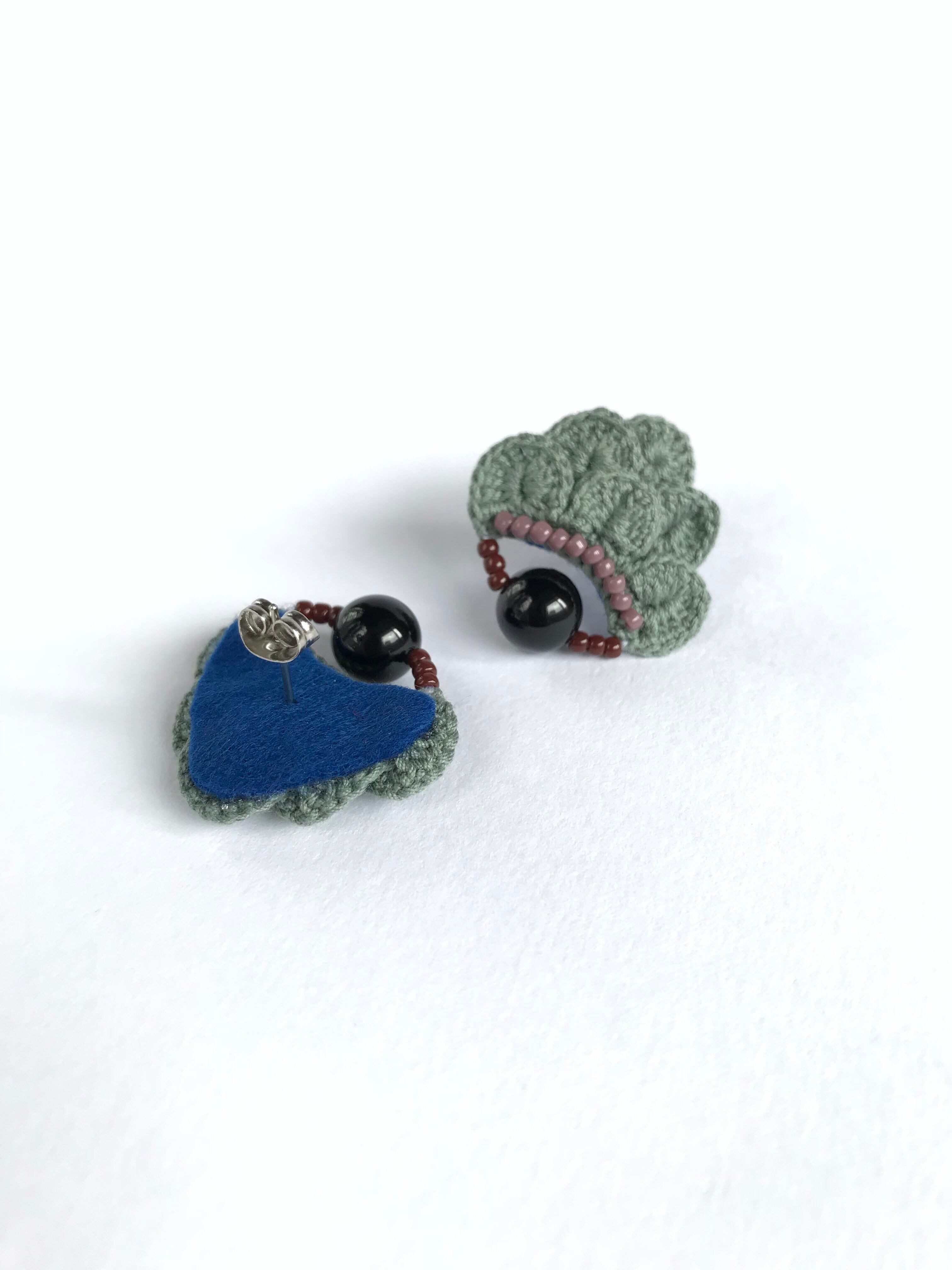 うろこのように編んだモチーフに2色のビーズとオニキスを組み合わせたピアスです♡