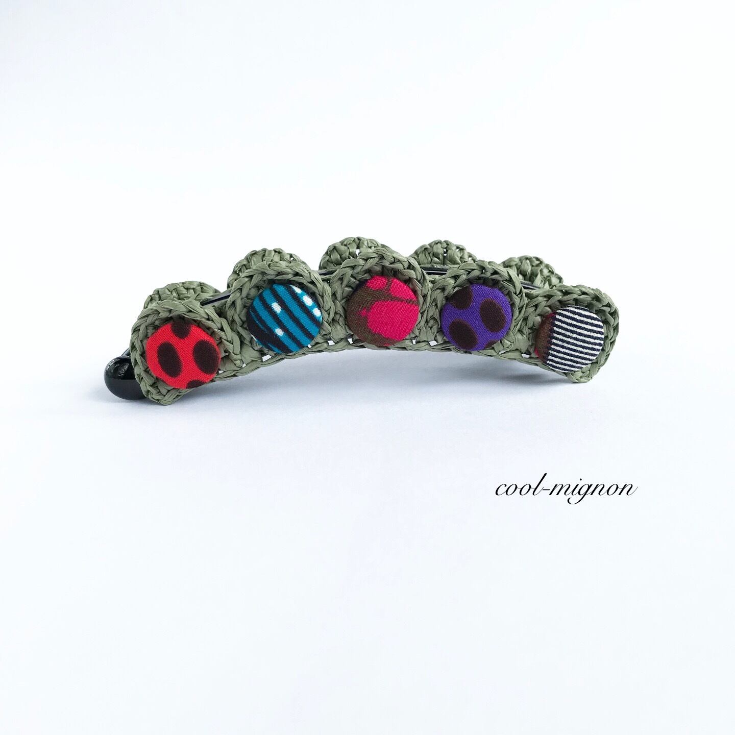 アフリカ布で作ったくるみボタンを組み合わせたバナナクリップです♡