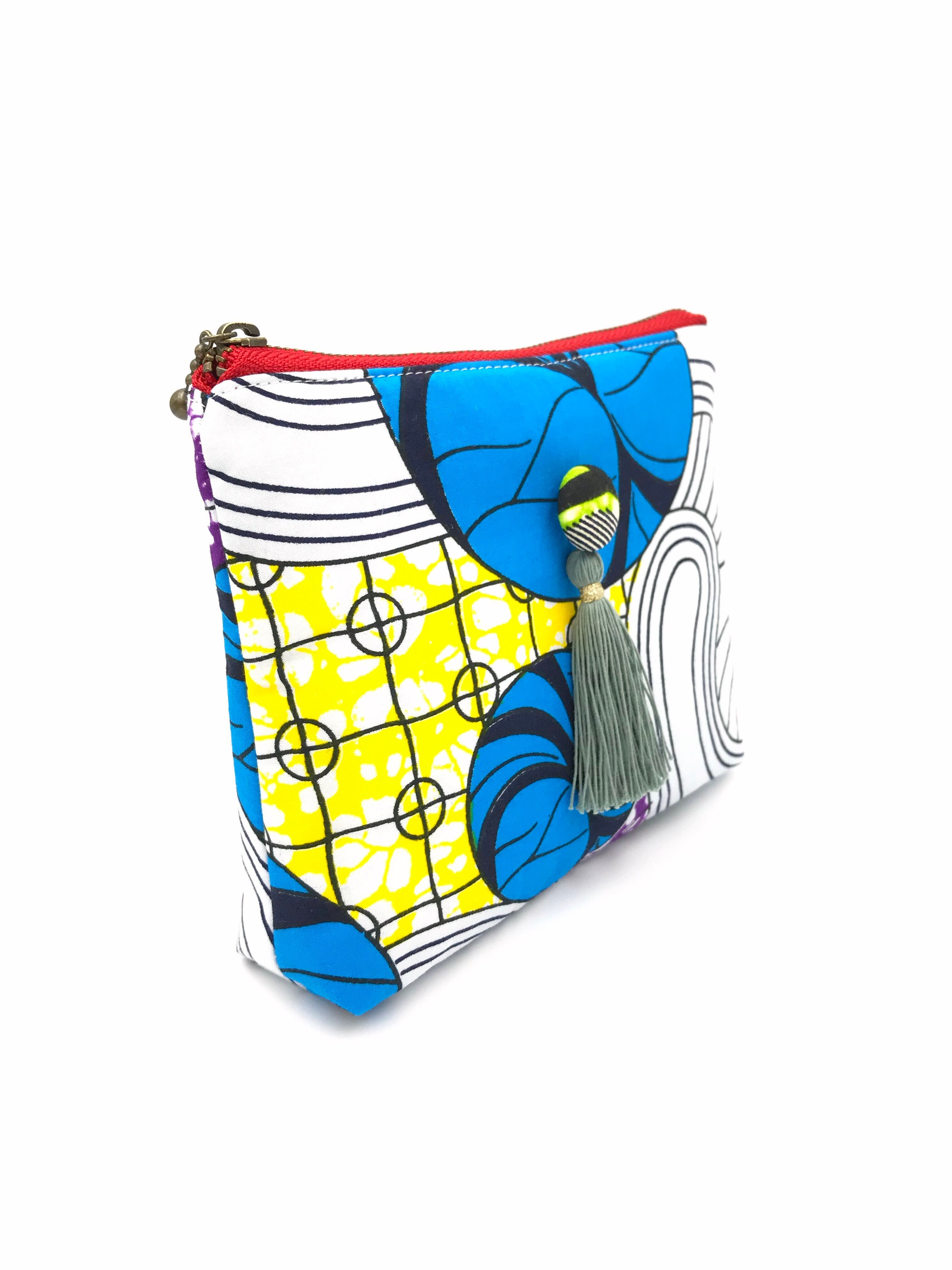 アフリカ布のポーチ*くるみボタン+タッセル付き