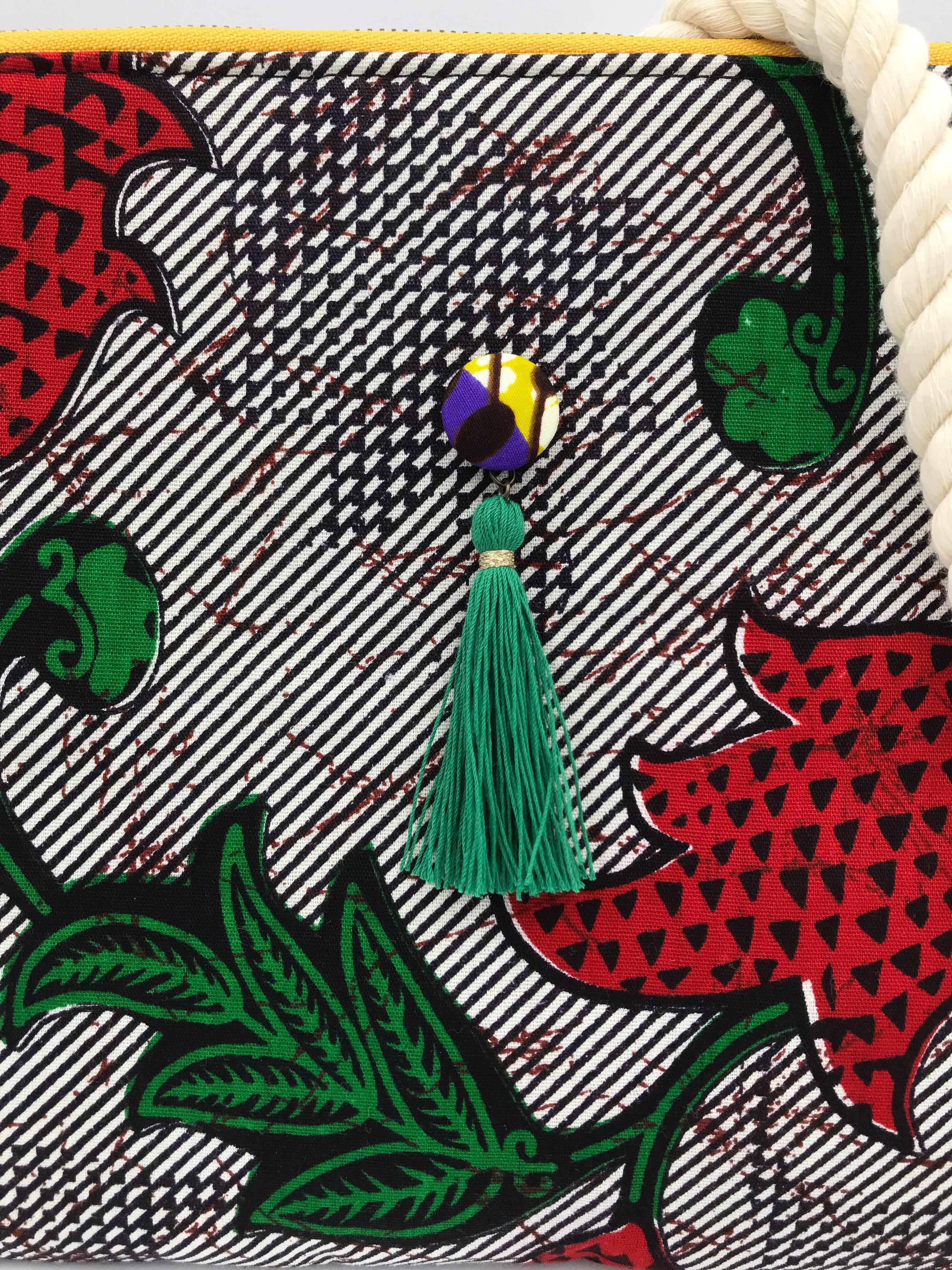 タンザニアのアフリカ布、キテンゲというプリント生地で作ったロープハンドルのショルダーバッグです☆