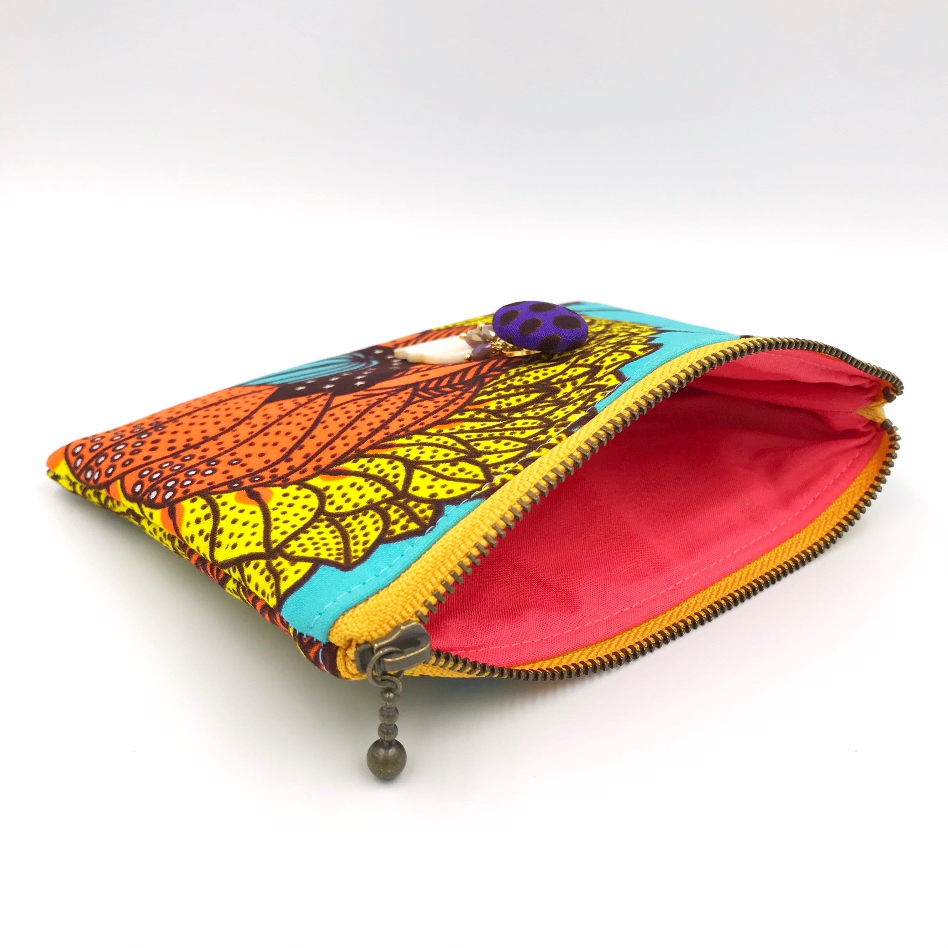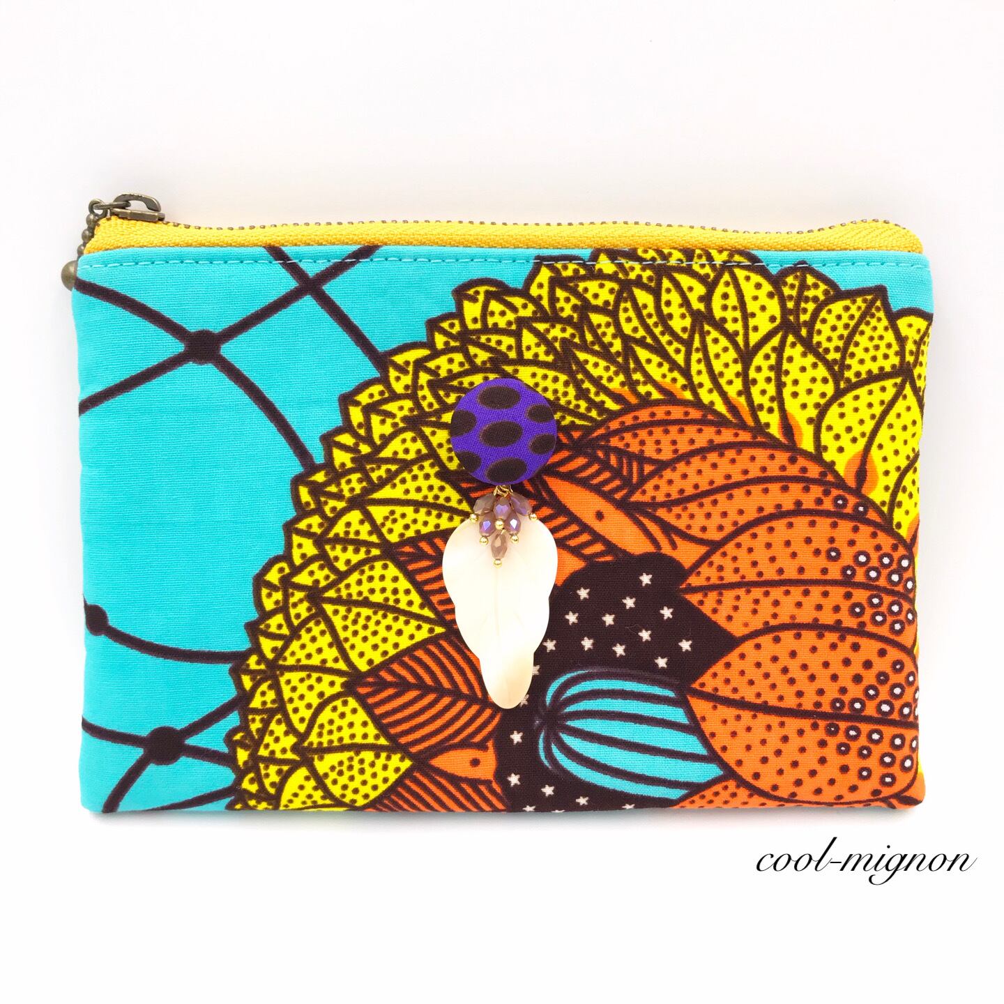 アフリカのキテンゲというワックスプリント生地で作ったマチなしのマルチポーチです♡