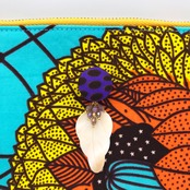 アフリカ布のポーチ✳︎くるみボタン+シェルチャーム付き