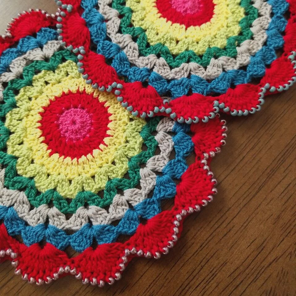 縁にそれぞれ違うお色のビーズを編み入れました♡